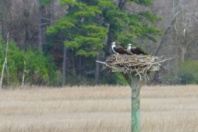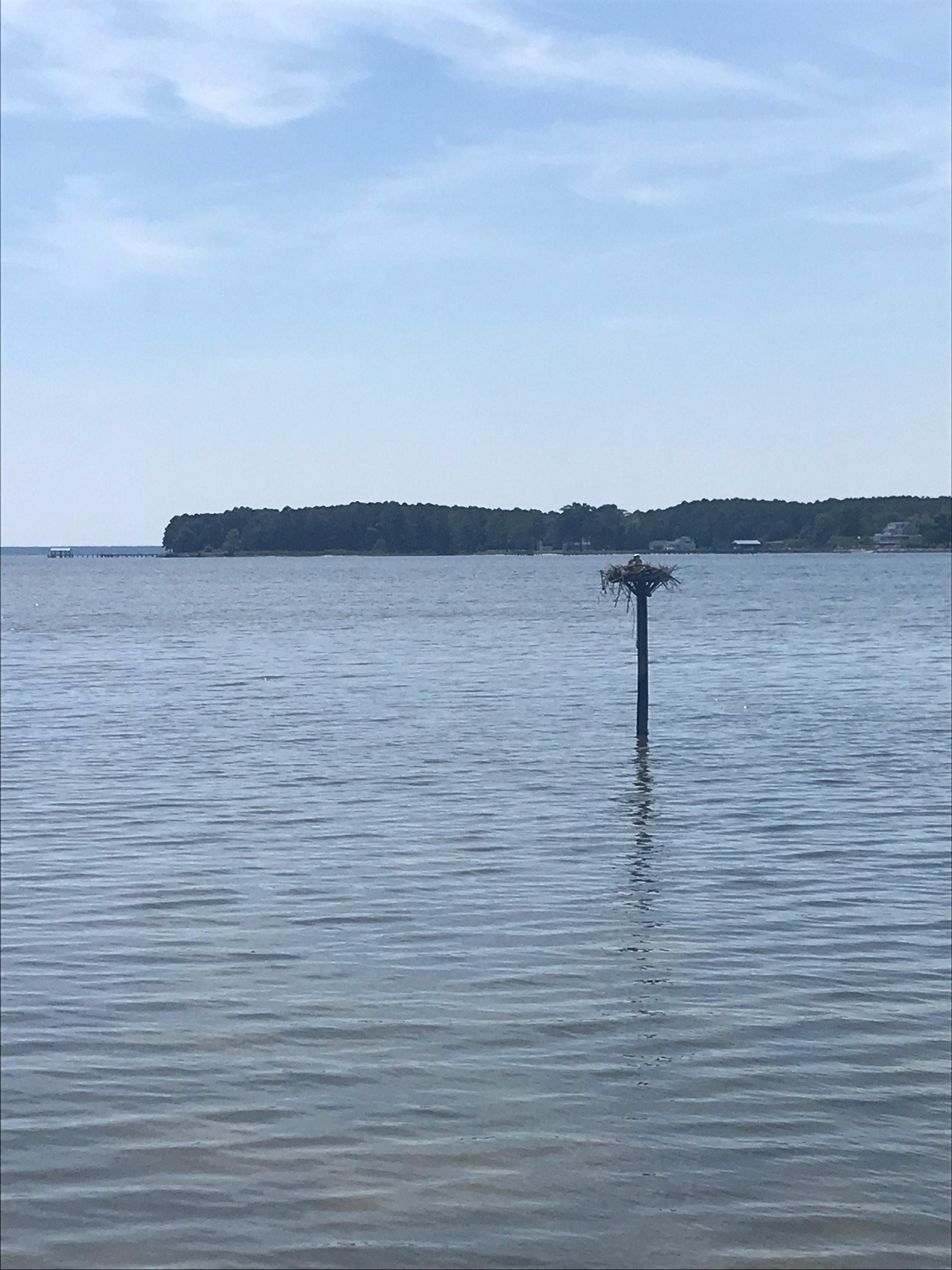 Met with Carol, the Virginia Master Naturalist spearheading the Project Osprey Watch nest monitoring in my area. Today we watched the pair for about 45 minutes. The nest was still fortified from last year and the ospreys were only doing slight patch jobs with sticks, netting, etc. The male was hunting and caught a fish during our time monitoring, however, he ate the fish himself, away from the nest. Carol told me this pair last year raised three healthy chicks, so I am hoping for another successful year. After surveying the marina for a little while with our binoculars we discovered a second nest about 200m away from the main nest we were monitoring. I estimate there are at least 6 breeding pairs on Queens Creek.